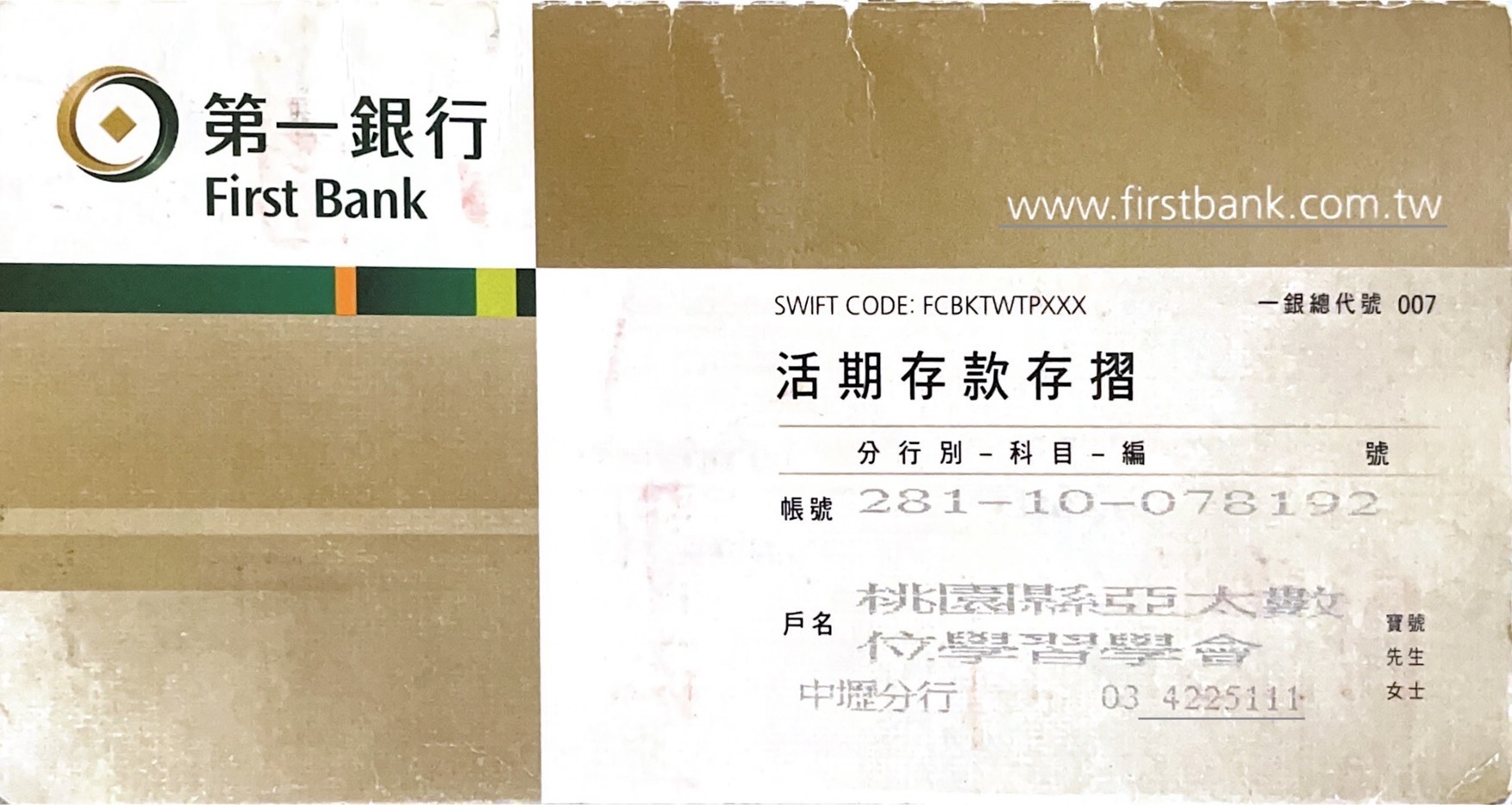 Please transfer to this bank account the equivalent amount (get the rate at https://rate.bot.com.tw/xrt?Lang=en-US ) and use the bank note as the receipt.